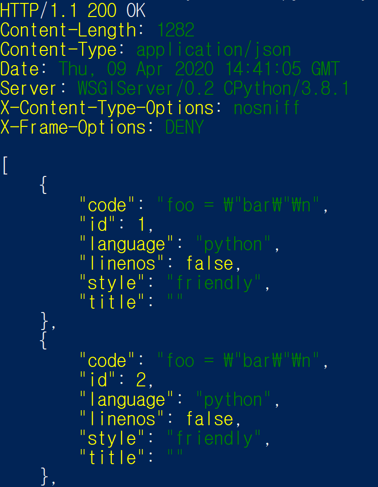 snippet = Snippet.objects.get(pk=pk) # 특정 snippet 가져오기